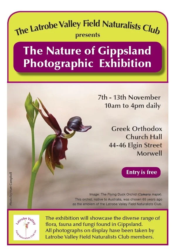 This year, the Latrobe Valley Field Naturalists mark their 65th anniversary. As part of our celebrations, we would like to share our enthusiasm for nature with the wider community by exhibiting photographs and stories covering flora, fauna and landscapes in Gippsland taken by our members.